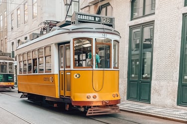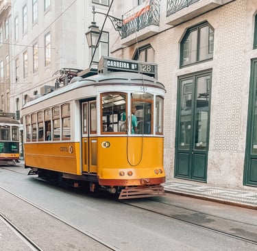 Alfama is especially magical, with narrow alleyways that twist down from Castelo de São Jorge, perched high on the hill. Some of the best viewpoints in Lisbon are hidden here, offering postcard-perfect views over terracotta rooftops and the river. If hiking uphill sounds daunting after a full day of exploring, you can hop on the famous Tram 28 — Lisbon’s iconic yellow tram — which winds its way through the historic streets and drops you off near the castle. It's a fun and classic way to see the city without the uphill trek!